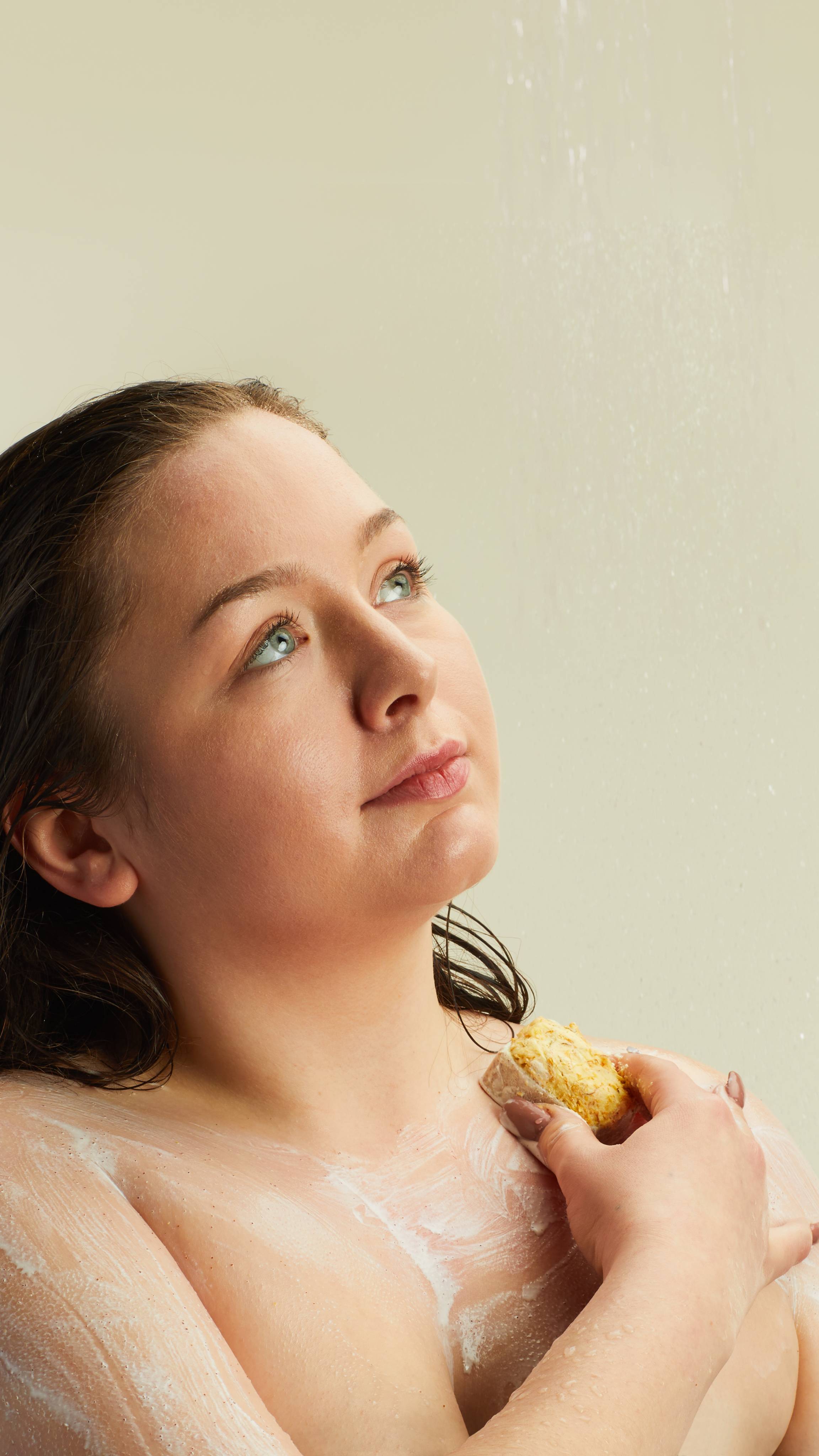 After washing, rub onto wet skin, massage in the rich butters, then rinse and pat dry. Use under water to make the bath bomb coating fizz.