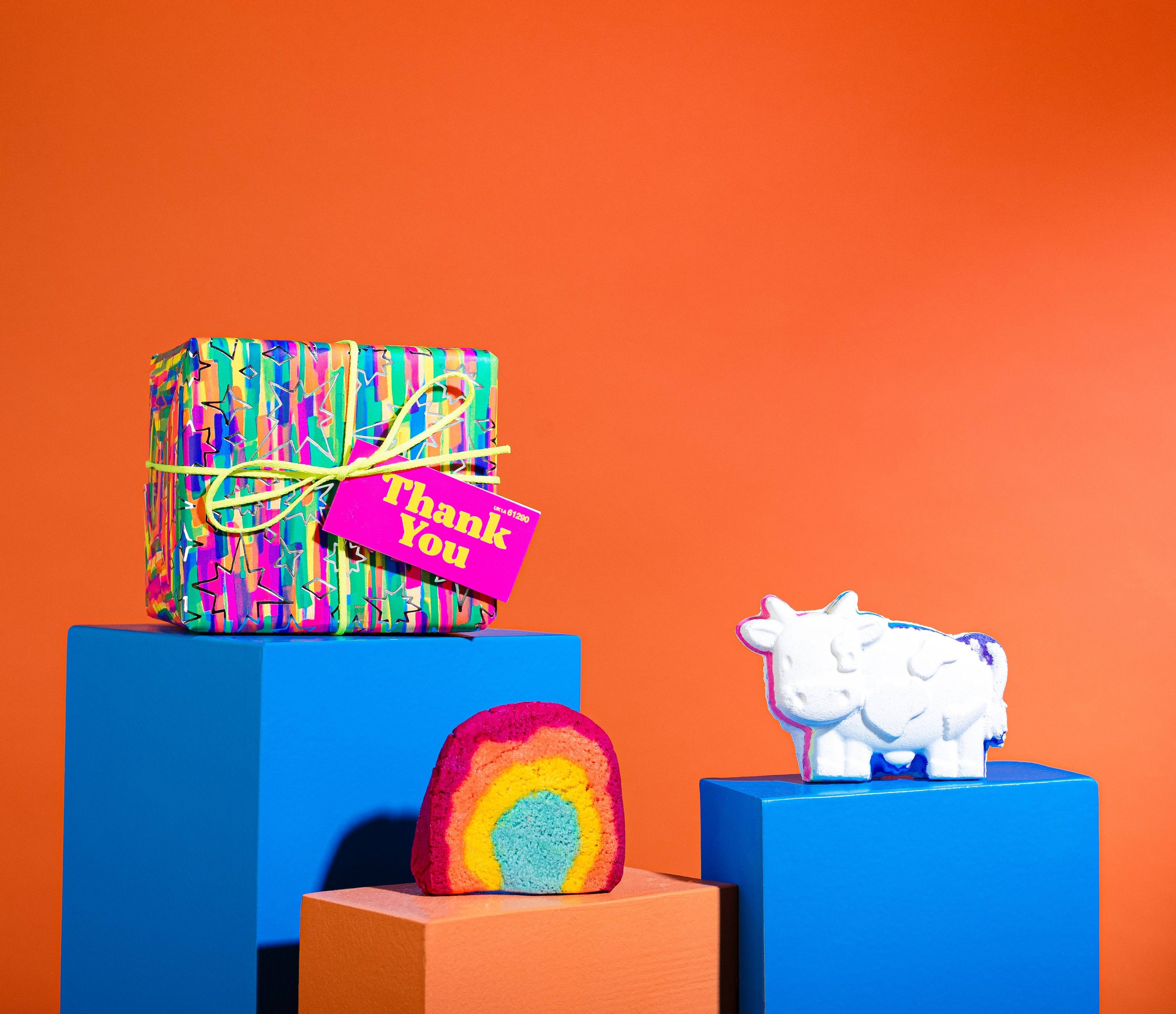 Take a splash in a bath of rainbows with these two colorful companions. Crumble our Rainbow Bubble Bar for a boisterous bath of Sicilian lemon and lemon myrtle oils, or drop in Toby’s Magic Cow Bath Bomb for a vegan-milky soak in relaxing patchouli and uplifting Brazilian orange oils. Either way, you’ll be surrounded by imagination inducing colors that’ll leave your feeling oh so joyful!
